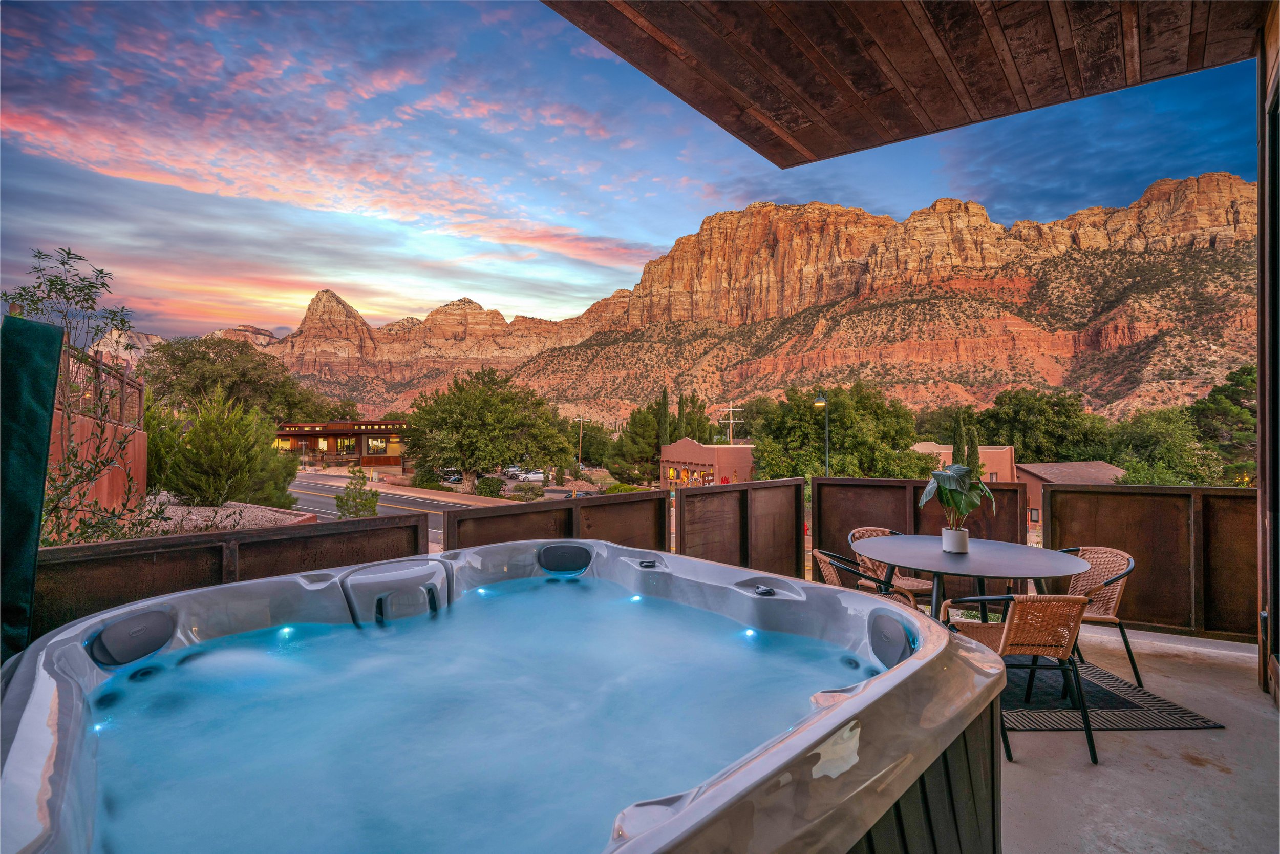 Nestled in the tiny town of Springdale, both of our suites offer breathtaking mountain views that transform with the setting sun. During the day you can walk across the street to Zion Guru and rent e-bikes to ride into Zion and/or gear up for The Narrows!
